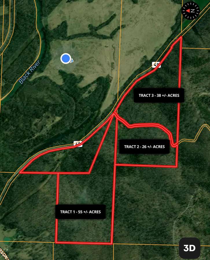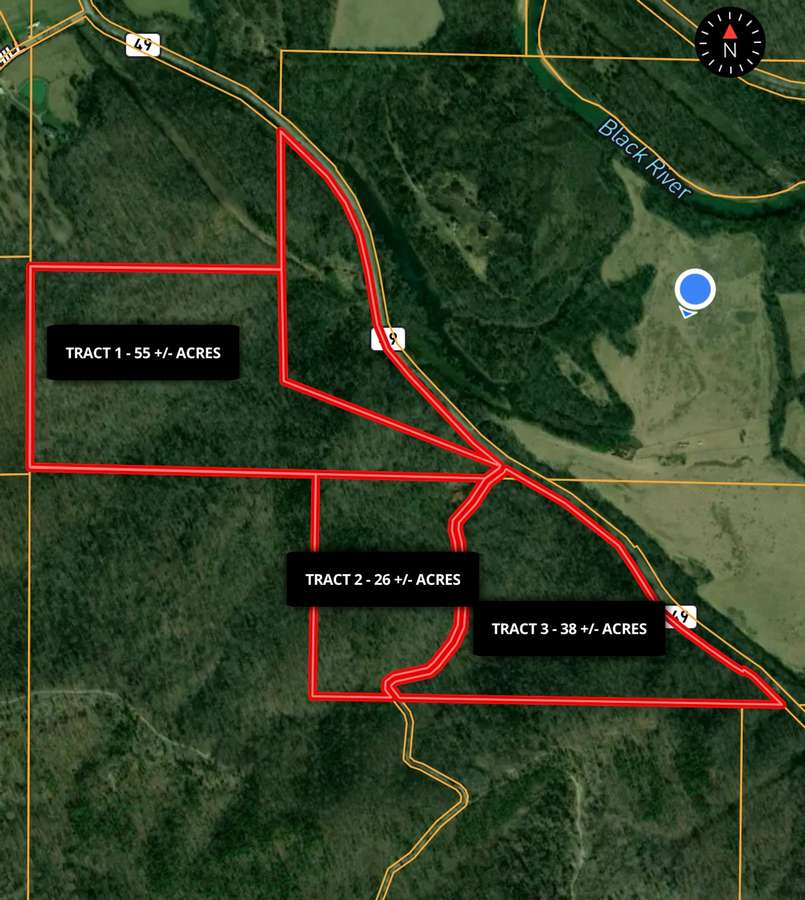 120 +/- Acres | 3 Tracts | Wayne County, Missouri Mill Spring • Ozark Mountains • Mark Twain National Forest Border Located approximately 3 miles south of Mill Spring, Missouri, this exceptional 120 +/- acre offering is divided into three tracts and sits on the southern edge of the St. Francis Mountain Range in the heart of the Ozark Mountains. The property lies west of Highway 49 and is largely bordered by the Mark Twain National Forest, creating a rare opportunity for privacy, recreation, and long-term land ownership surrounded by protected land. The land features gently rolling to rugged Ozark timberland with mature woods, abundant wildlife, and classic mountain scenery. Electric power is available, and access is excellent with Highway 49 frontage as well as county road access. County Road 441 serves the property and is a dead-end road leading only to a cattle farm, ensuring no through traffic and a quiet, secluded setting. The Black River is close by, and the beautiful Bunyard Spring—one of the region’s most scenic natural springs—flows under Highway 49 adjacent to the property, adding to the area’s natural appeal and recreational value. Tract Breakdown: • Tract 1 – 55 +/- Acres Features a north boundary adjoining a private landowner, with the remaining borders joining the Mark Twain National Forest. Ideal for a private homestead, hunting base, or recreational retreat with unmatched seclusion. • Tract 2 – 26 +/- Acres A versatile smaller tract well-suited for a cabin site, recreational use, or investment, with easy access and close proximity to national forest land. • Tract 3 – 38 +/- Acres Excellent timber and recreational ground with strong access, abundant wildlife, and direct connection to the surrounding Ozark landscape. All tracts offer outstanding hunting, hiking, and outdoor recreation, with thousands of acres of national forest literally at your doorstep. Whether you are looking for a private retreat, hunting property, timber investment, or a combination of all three, this property delivers location, access, and natural beauty in one of southeast Missouri’s most desirable rural settings. All final acreage to be determined by survey.